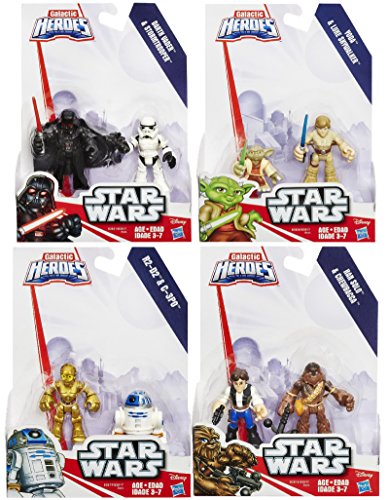 -. Title : Playskool Heroes Star Wars Galactic Heroes 4 Pack Set including Yoda, Luke, R2D2, C3P0, Chewbacca, Han Solo, Darth Vader, and Stormtrooper