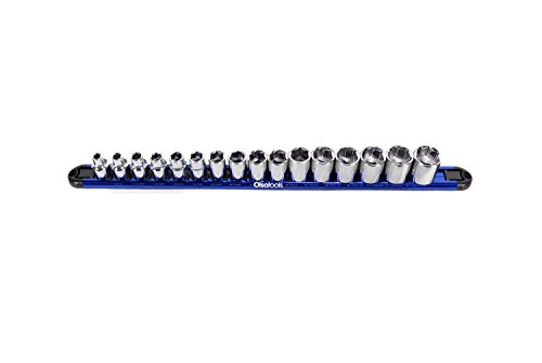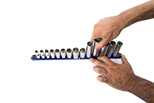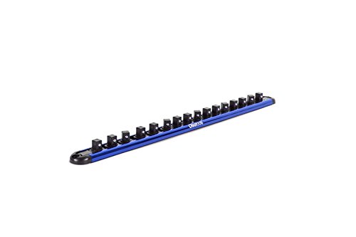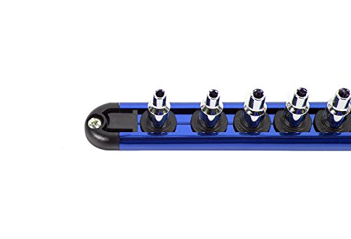 Olsa Tools | Magnetic Socket Organizer | 3/8" Drive Rotating Clips | Made With Rare Earth Magnet | Blue Anodized Aluminum Socket Rail