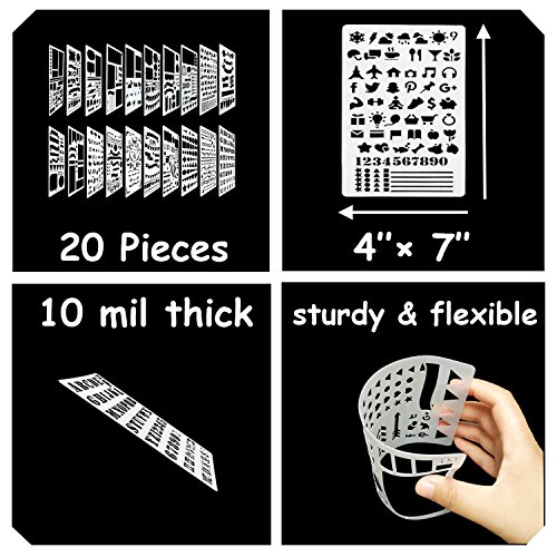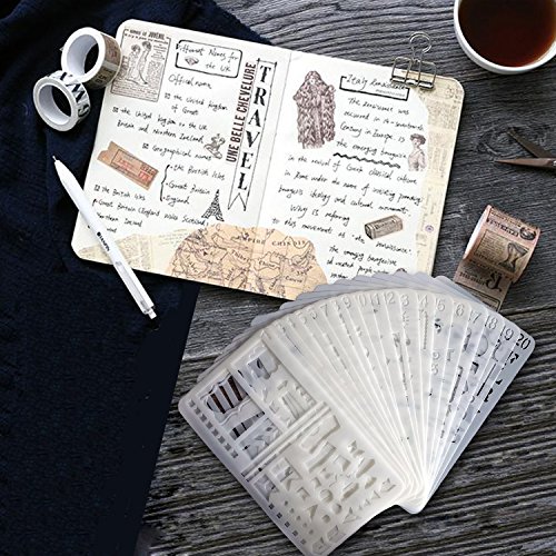 Vermogen Journal Stencils Set 20 Pcs DIY Drawing Templates for Journal Scrapbook Diary Notebook Over 1000 Different Patterns Plastic Planner Stencil for Painting