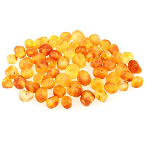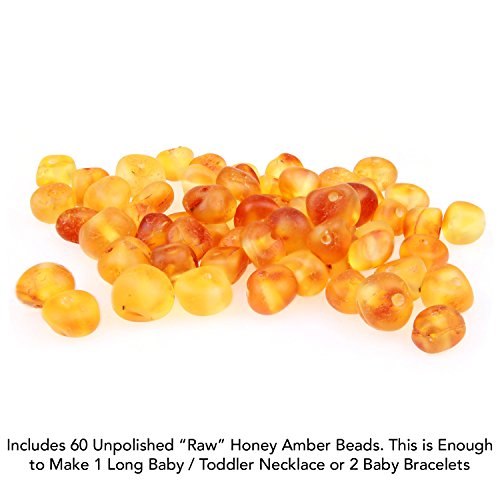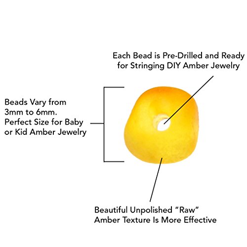 60 Loose Amber Beads - Raw Unpolished Honey Color - 3-4mm Width - Pre-Drilled Holes Ready for Stringing Jewelry - Bulk DIY Supplies for Making Baltic Teething Necklaces, Bracelets & Jewelry