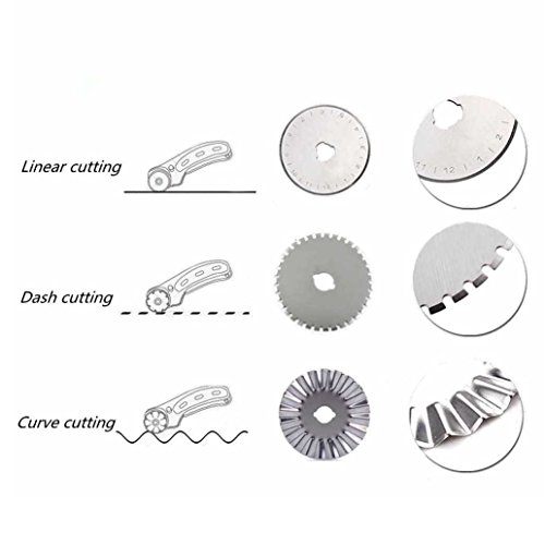 5 Replacement Blades: Come with 5 extra rotary cutter blades; 2 for straight lines; 2 for curve cutting; 1 for dotted line cutting