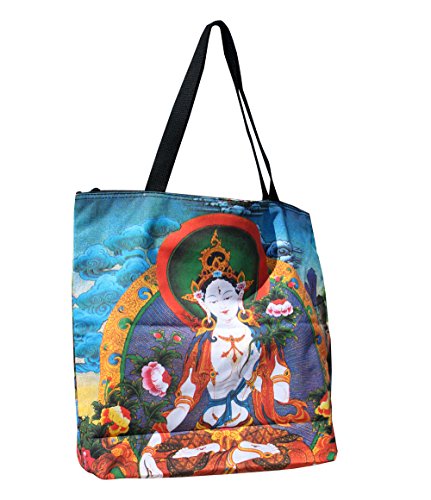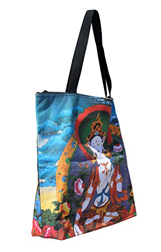 RaanPahMuang Large Shopping Tote Bag Ancient Tibet Artwork White Tara With Sky Art