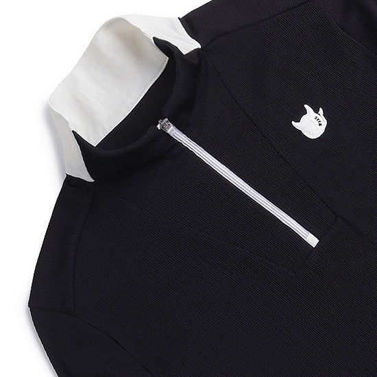 - 넥 뒷면에 배색 디테일로 포인트 멋을 연출함.