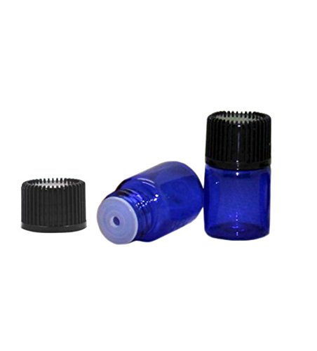 30 x Blue Glass 2 ml(5/8 dram) Essential Oil Bottles Cosmetics Sample Vials Perfume Lotion Storage Bottles With Orifice Reducer and Black Cap
