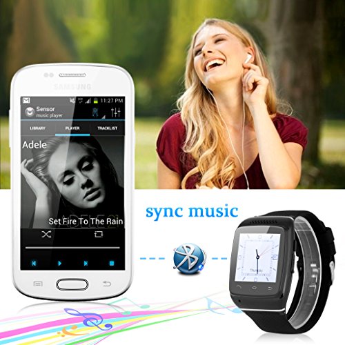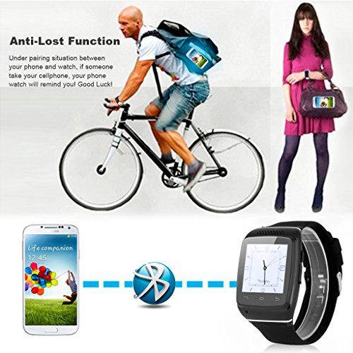- Feature : Bluetooth Function: With bluetooth V3.0, this smart wristwatch is available for IOS and Android phone with bluetooth function( bluetooth should be V2.1 or above). / Sync Function: 1.Sync phonebook with Android devices or IOS; 2.Sync SMS with Android devices; 3. Sync incoming call with Android devices or IOS; 4.Sync music with Android devices or IOS. / Anti-lost: Alarm with sound or vibration if leaving your smartphone away from about 10 meters. / Voice Call: You can use voice to dial or search as long as your smartphone has this voice dialer funciton. / Remote Capture: You can take photos of whole family without other help, just use