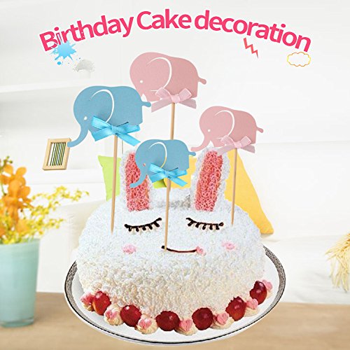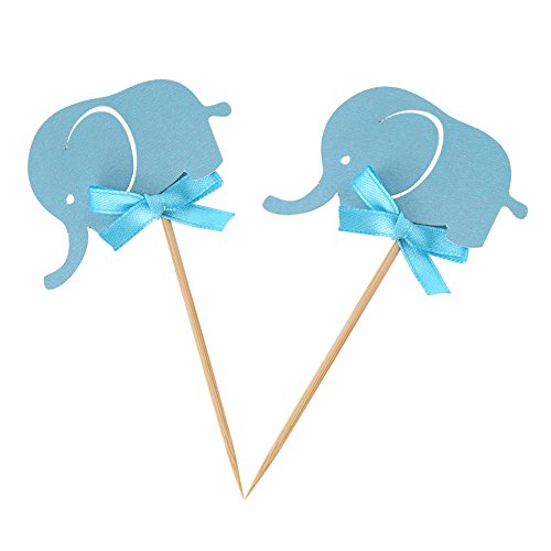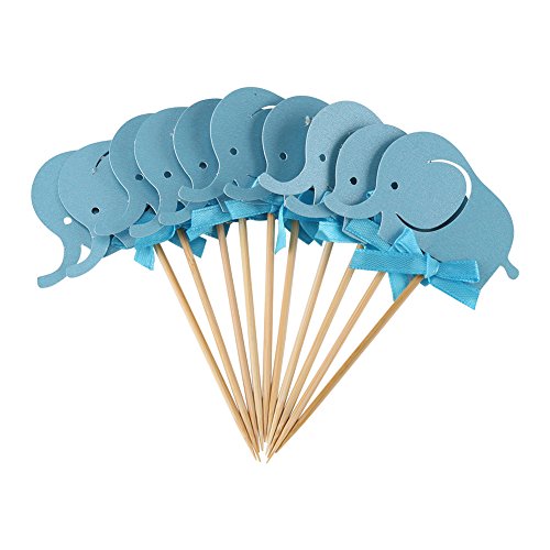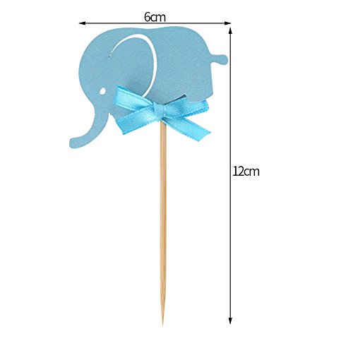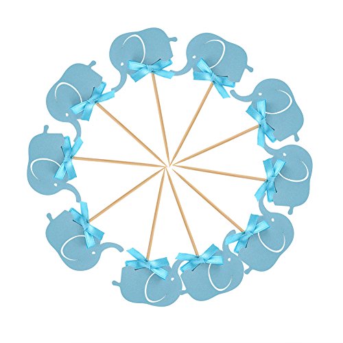 10Pcs/Set Cake Paper Pick Cute Elephant Double-Sided Cupcake Picks Decoration for Wedding Birthday Baby Shower Party Cake Decor (Blue)