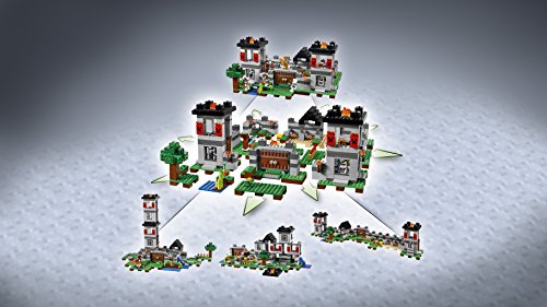 You've built a huge fortress on the open, grass-covered MinecraftTM plains, complete with lookout towers, large pressure-plate doors, an area for growing vital crops and food for feeding your horse and sheep, plus a cool waterfall. But an army of skeletons is approaching the fortress walls. It's time to defend your home and your livestock. Light the fires and torches, load up the cannons and take your golden armor from its stand. Then choose a weapon from the chest containing the wood, stone, iron, gold and diamond swords, and prepare for battle! - Includes a Steve minifigure, plus a horse, sheep and 3 skeletons.- Features a MinecraftTM fortress with large pressure-plate doors, lookout towers, decorative CreeperTM banners, barred windows, water and farm areas and a prison with door-opening function.- Press the pressure plate to open the fortress doors.- Light the fires and torches to ward off the approaching skeleton army.- Load up the cannons and defend The Fortress.- Accessory elements include Steve's golden armor and golden helmet,armor stand, armor, helmet, crafting table, weapons chest and a hay bale.- Weapons include 5 swords and 3 skeleton bows.- Easy-to-rebuild modular design with 3 alternative model configurations.- Set your imagination free - rebuild the set for more LEGO® MinecraftTM creations!- This set includes over 900 pieces.- This set offers an age-appropriate building experience for ages 8+.- Measures over 16cm high, 33cm wide and 34cm deep.Ages: 8+Pieces: 984