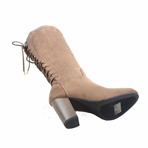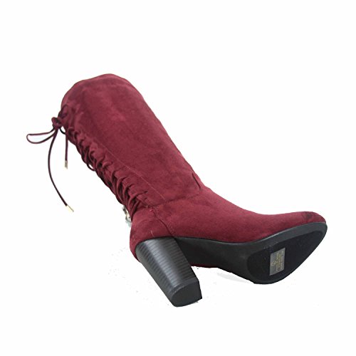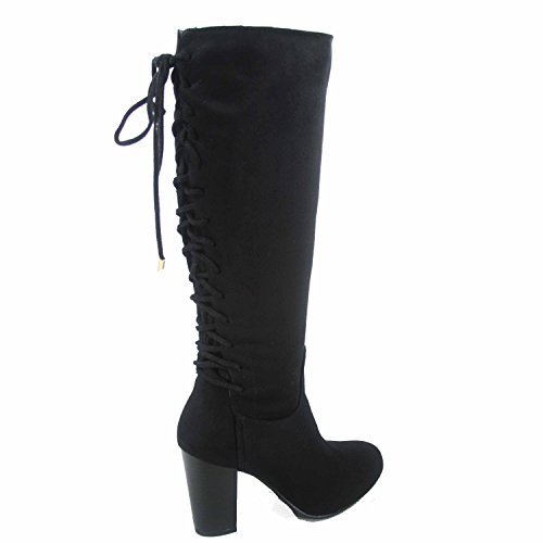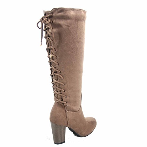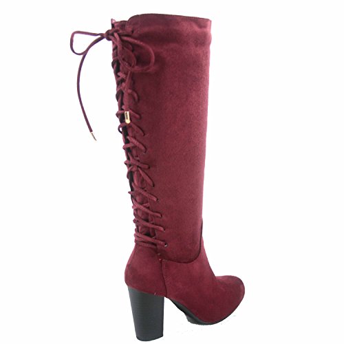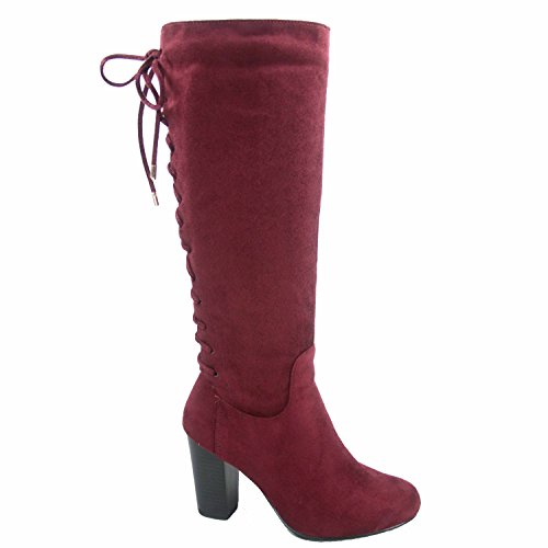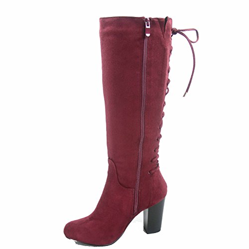 Top Moda Sophie-30 Women's Back Lace Up Chunky Heel Zipper Mid-Calf Boots Shoes