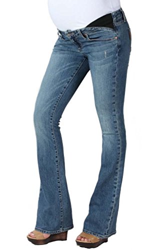 The Union Laurel Canyon Maternity jeans are a great bootcut jeans. The light wash is perfect for the spring and summer and they are distressed for a casual look. Pair these with a flowy top and your favorite wedges for a fun summery look. The underbelly fit made even more comfortable with the stretch inserts on the sides of the jean. Fabric: 80% cotton, 19% polyester, 1% spandex.Feature