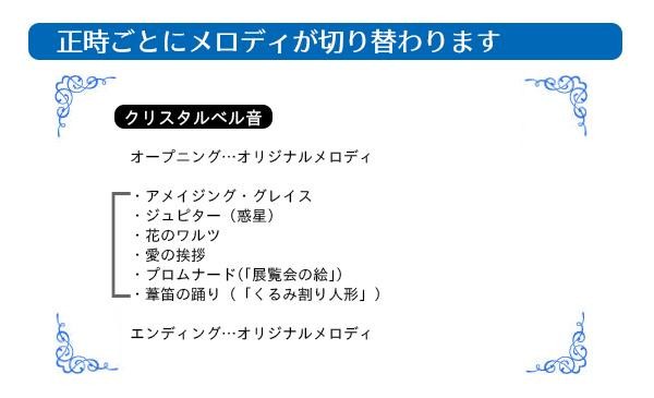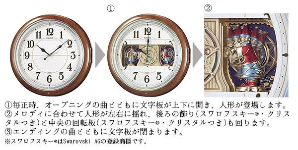 | 毎正時、オープニングの曲とともに文字板が上下に開き、人形が登場。見る人を魅了し、煌めきの世界へ誘います |