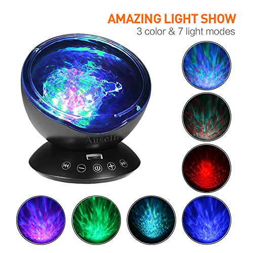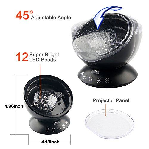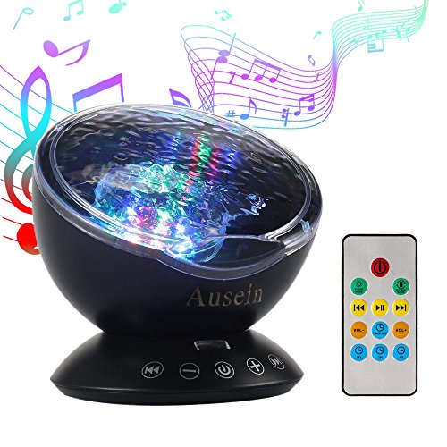 Remote Control Ocean Wave Projector, Ausein 12 LED&7 Color Modes Aurora Color Changing Night Light Projector Baby Soother Built in Relaxing Music Player for Kids Bedroom Living Room with Timer (Black)