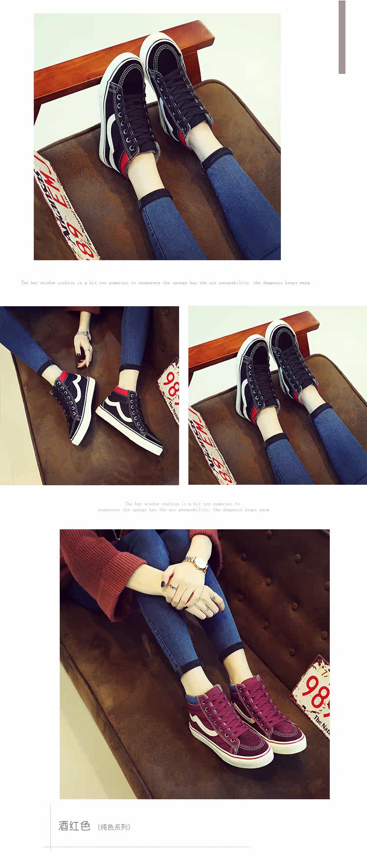 • 颜色分类: 黑色(加绒) 酒红色(加绒) 深蓝色(加绒) 黑色(不加绒) 酒红色(不加绒) 深蓝色(不加绒) 尺码偏大, 建议选择小一号