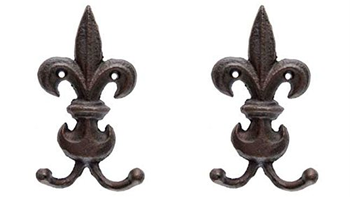 Fleur-De-Lis Double Hooks Cast Iron Set of 2