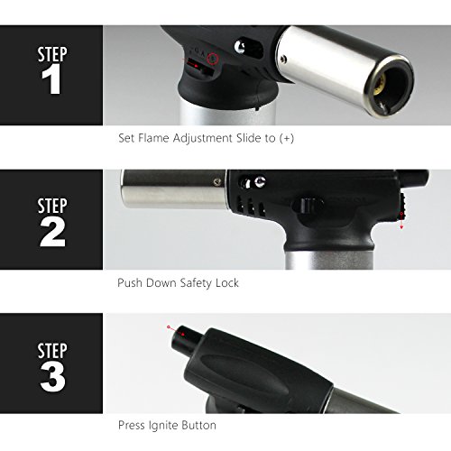 ADJUSTABLE FLAME AND LOCKING TRIGGER: The adjustable flame allows for the perfect amount of flame and heat depending on what you are flaming up! The locking trigger is like a safety to prevent misfires or accidents