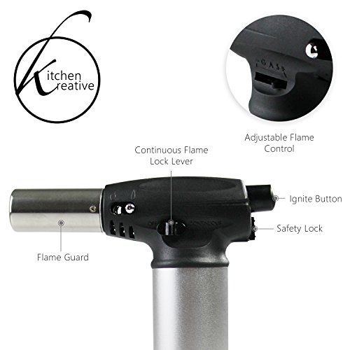 SAFETY COME FIRST IN THE KREATIVE KITCHEN: Top quality production torch is made for the novice to expert chef. With top performing design and safety features such as locking trigger and adjustable flame you anyone can use the torch in style