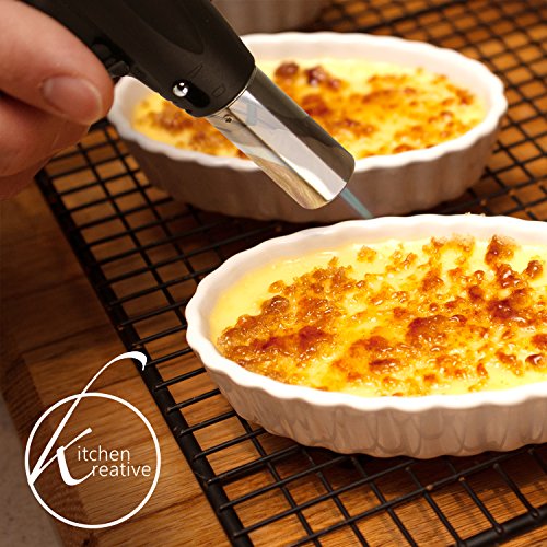 PROFESSIONAL KITCHEN COOKING TORCH FOR EVERYONE: Upgrade your cooking skills and presentation in a simple and amazing way. Get that golden crisp on top of your favorite foods by using the Kitchen Kreative Butane torch. Creme Brulee at its finest