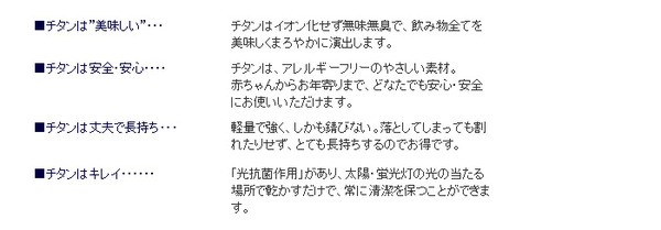 ■チタンは”美味しい”・・・チタンはイオン化せず無味無臭で、飲み物全てを美味しくまろやかに演出します。