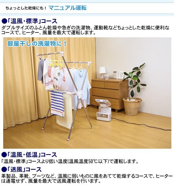 面倒なマット&ホースを使わないふとん乾燥機。様々なコース搭載で、使いやすさにも優れています。Wファンと大きな吹き出し口による大風量でパワフルに乾燥!!薄さ13cmとコンパクトなので収納も便利♪ふとんだけでなく洗濯物や靴の乾燥にも使用できます。 |