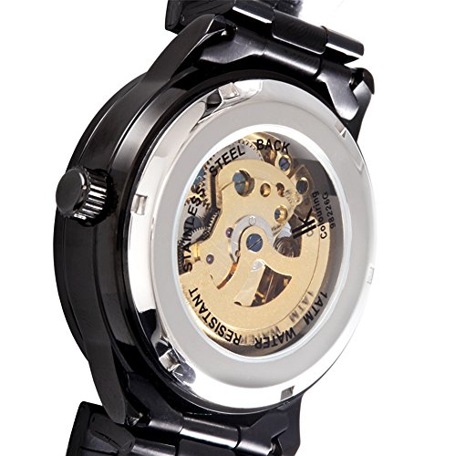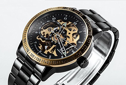 -. Binding : Watch -. Brand : IK Colouring -. Department : unisex-adult -. Feature : IK colouring Black Steel Mechanical Watch for Men / Black Watch Dial, Sharp Golden Bezel, Luminous Hands and Mineral Glass / ALL Black Steel Watch Case and Watchband, Fold-over-clasp with IK Colouring Brand Logo / Skeleton Hollow-out Watch Dial. See-through. The tachymeter bezel only for decoration / Water Resistance 1 ATM (splash proof). Come with GuTe minimalist Watchbox ECO-friendly with Simple Instruction -. Label : GuTe Trade -. Manufacturer : GuTe Trade -. MPN : 98226-bbg -. PackageQuantity : 1 -. PartNumber : 98226-bbg -. ProductGroup : Watch -. ProductTypeName : WATCH -. Publisher : GuTe Trade -. Studio : GuTe Trade -. Title : GuTe Fashion Steampunk Black Steel Golden Bezel Automatic Mechanical Wrist Watch Mineral WR10M