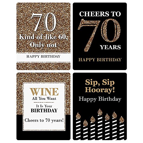 Adult 70th Birthday - Gold - Wine Bottle Labels Birthday Gift - Set of 4