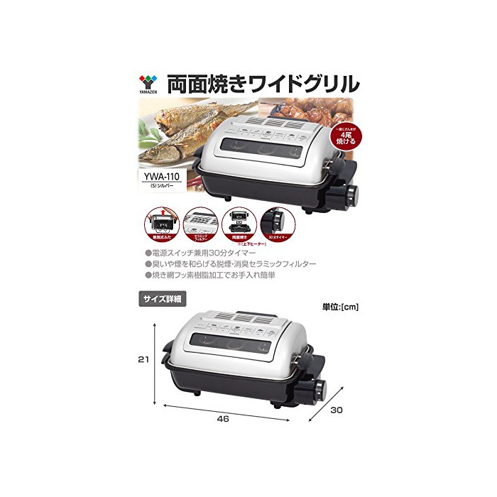 야마젠(YAMAZEN) 양면 구이 와이드 그릴 실버 YWA-110(S)