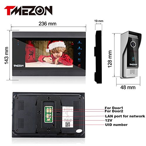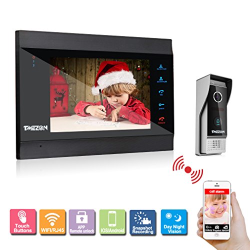 TMEZON 7 Inch Wireless/Wired Wifi IP Video Door Phone Doorbell Intercom Entry System with 1x1200TVL Wired Camera Night Vision,Support Remote unlocking,Recording,Snapshot