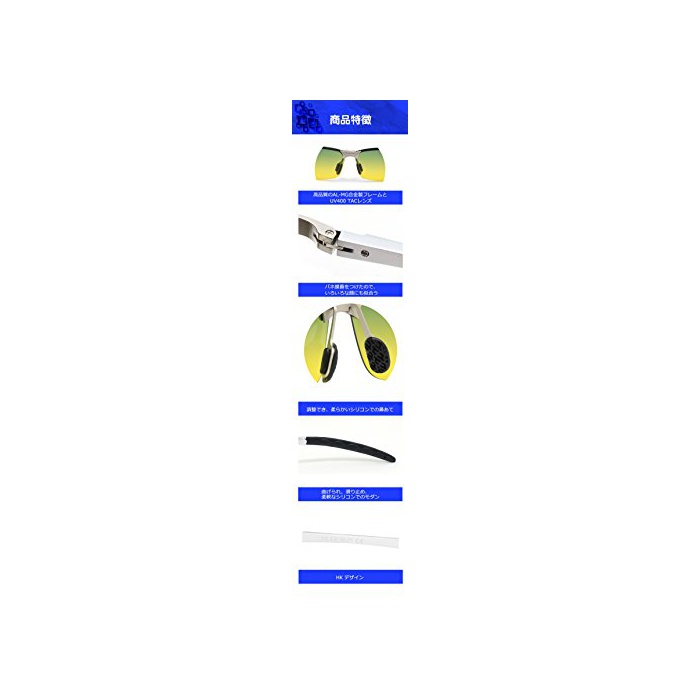 알루미늄 마그네슘 합금 프레임:이 재료를 사용하고, 썬글라스 전체의 체중이 3kg 줄이고, 보통의 재료 보다 딱딱하다.