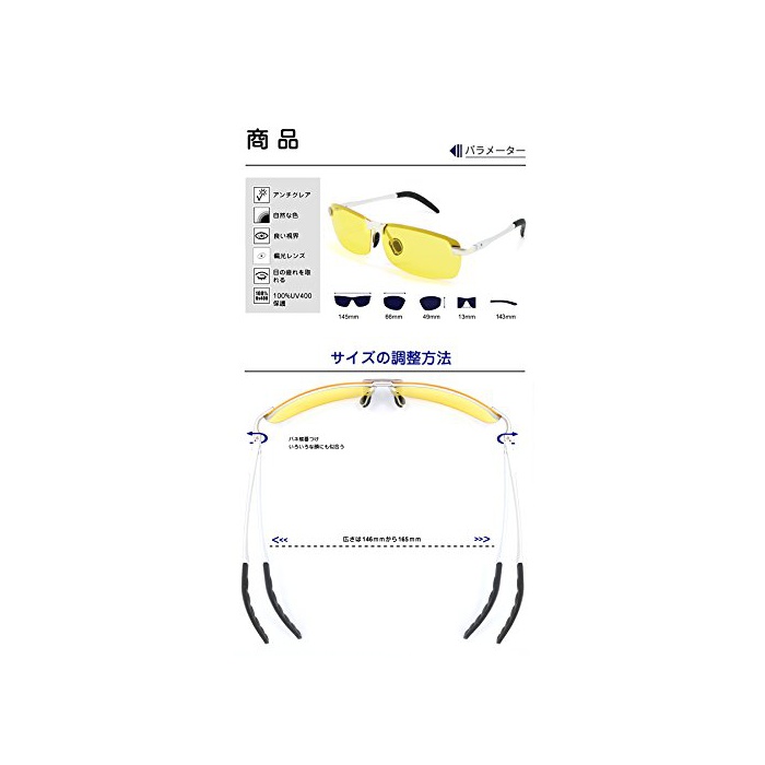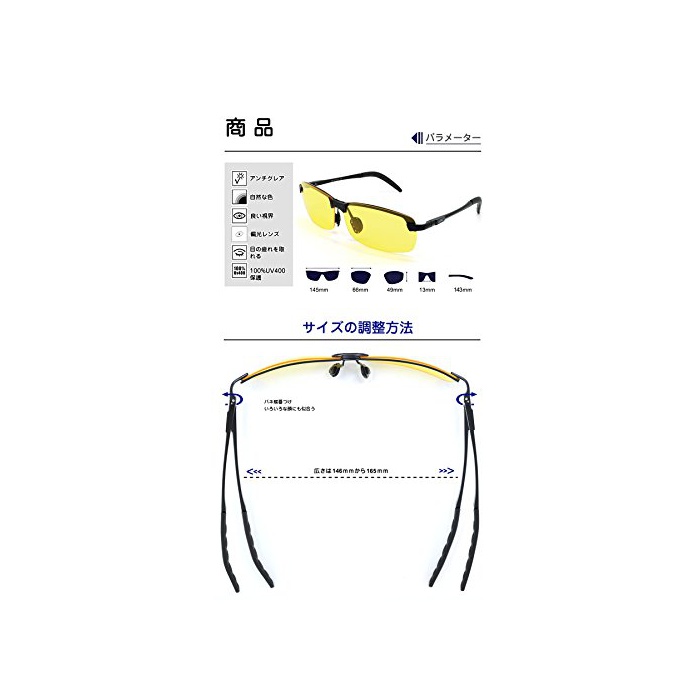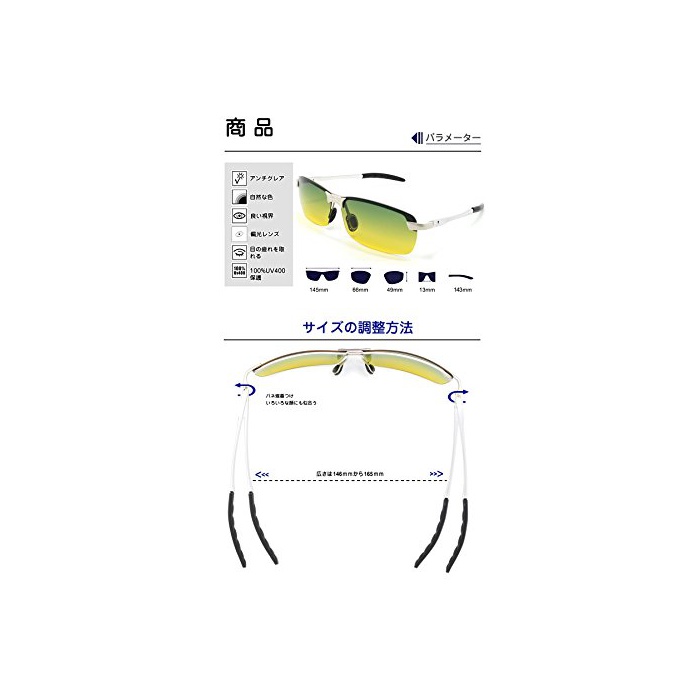 고품질의 나이트 비시《》편광 렌즈:100%UV400코팅 100%유해한 자외선(UVA&UVB)컷 한다.노면,눈과 해등의 반사광을 없애고, 炤 경감 성과,원래의 색에 충실하게 재현한다.난반사광을 없애고, 눈(째)를 완전히 보호 하고, 몹시 좋은 시야를 제공한다.야간용 렌즈가 야간 운전시의 현 하여 있어 빛을 완화하고, 눈(째)의 피로를 잡히는 효과를 있고, 나안으로 가장 가까워지는 색조로 보인다.야간이나 비나 흐림의 일에도 좋은 시야가 되고, 더 쾌적한 안전 운전 할 수 있는.