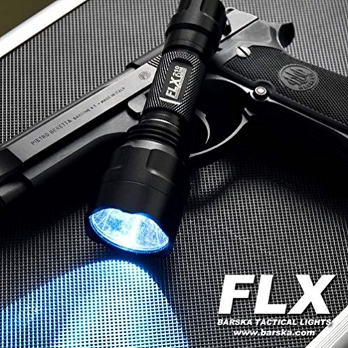 - Feature : 210 Lumen bright LED Flashlight with 3 Levels of brightness, strobing pattern and SOS pattern / Tactical accents, pressure sensitive push on off button, and beveled edge for added protection / Battery Life Continuous Use: 2.2 Hours. Battery: 2 CR123 (not included) / Length (Inch): 6.75 ; Weight (oz.): 3.52 / Included Accessories: Tactical pressure switch cord, 1" Weaver mounting ring, and wrist strap