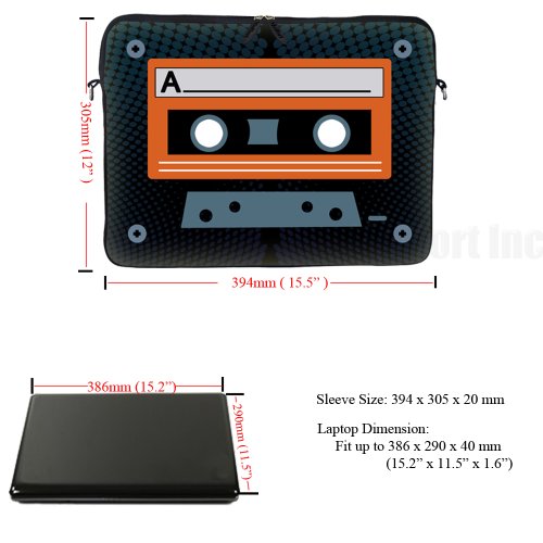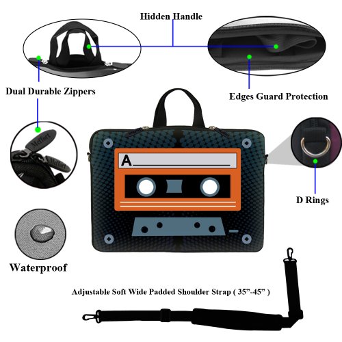 -. Binding : Electronics -. Brand : Meffort Inc -. EAN : 0765573881776 -. Feature : Hydrophobic (water resistance) neoprene material, w. reinforced dual zipper to secure your device / High quality P.R.Inting on both side of the bag with laptop edge guard / Fits laptop size up to 15.6", Fits laptop dimension up to: 15.2" (385mm) x 11.5" (290mm) / Item can be use as shoulder bag w. strap in use or can be use as carrying bag (Hidden Handle) or Sleeve / Note: zipper will not close fully when hidden handle is in use, but it doesn't affect functionality -. Label : Meffort Inc -. Manufacturer : Meffort Inc -. Model : GStrap2706 -. MPN : GStrap2706 -. PartNumber : GStrap2706 -. ProductGroup : PC Accessory -. ProductTypeName : CARRYING_CASE_OR_BAG -. Publisher : Meffort Inc -. Studio : Meffort Inc -. Title : Meffort Inc 15 15.6 inch Neoprene Laptop Sleeve Bag Carrying Case with Hidden Handle and Adjustable Shoulder Strap - Cassette Tape Design -. UPC : 765573881776