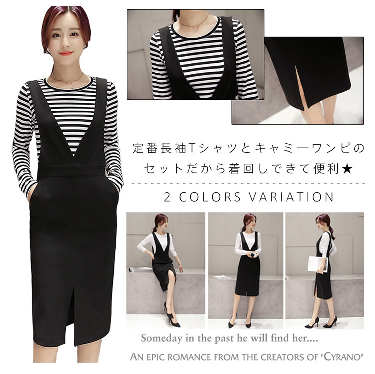 | 定番長袖Tシャツとキャミ?ワンピのセットだから着回しできて便利★膝丈だから大人女子だって抵抗なく★Vネックワンピで小顔効果★オールシーズン大人気のフレアスカートはオシャレ女子には欠かせないアイテムです★ | |