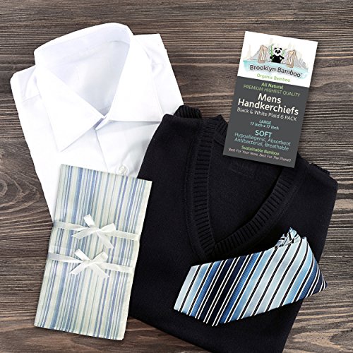 Product Description #1 Men's Handkerchief - Brooklyn Bamboo. A new standard for men's hankies. 6 pack - large 17 inch by 17 inch size. Bamboo hankies are better than cotton, silk or linen. Softest, Most Durable And Absorbent. Better For Your Nose, Better For The Planet! 0