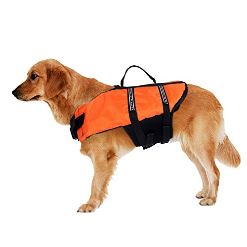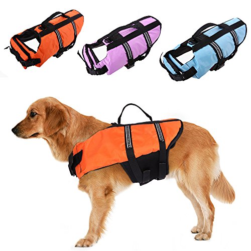 -. Feature : ❤❤FIT & FUNCTION❤❤Dogs come in all shapes and sizes. Whether your dog is short and stout or long and lanky, there's a life jacket that's perfect for them. QBLEEV life jackets are available in sizes ranging from XXS to L, making it easy for you to choose a size that supports your dog and fits their swimming needs.Whether your dog is a seasoned water dog or is preparing for their first swim, QBLEEV dog life jackets help them go further and play longer. / ❤❤SPLASH WITH SAFETY❤❤ Filled with environmental protection buoyancy pearl cotton to enable strong buoyance and safety guarantee. Velcro surrounds the body and neck to provide safety protection. Dogs love to swim and we love to keep them safe. The QBLEEV Life Jacket provides a comfortable and secure fit for tons of fun in the water. / ❤❤CONVENIENCE❤❤Convenient top grab handle for easy rescues by hand or boat hook; Adjustable nylon straps and quick-release buckles ensure the perfect fit;Sandwich mesh cloth is convenient for perspiration and clothes drying.PERFECT FOR POOL PARTIES, TRIPS to the beach or on the boat. The adjustable straps ensure the perfect pup fit while the grab handles make it easy to pull your dog out of the water in an emergency. / ❤❤HIGH VISIBILITY❤❤Reflective accents and bright colors for high visibility, the reflective bar make you easy to see where your baby is when he or she is playing in the water。Whether your dog splashes near the shore or plays in the waves, the QBLEEV dog life jacket was made to be noticed. Boasting bright coloring and sleek reflective piping, you'll be able to quickly identify your dog in and out of the water. / ❤❤OUR COMMITMENT ❤❤ Available in 3 colors (orange,purple,blue) and 5 sizes,pls note the size specification and measure your pet before purchasing.If you have any problems or confusion,let us know, we will be happy to solve it, GIVE YOUR MONEY BACK or REPLACEMENT.