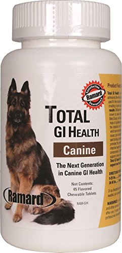 -. Binding : Misc. -. Brand : Ramard -. EAN : 0890347002481 -. Feature : Comprehensive gastrointestinal product that addresses the entire GI tract / Supports normal healing processes and supports normal mucosal lining / For use in all ages of dogs / Made in the USA -. Label : P.R.Ime Pet Deals - Code 1 -. Manufacturer : P.R.Ime Pet Deals - Code 1 -. Model : RAM-GIH -. MPN : RAM-GIH -. PackageQuantity : 1 -. PartNumber : RAM-GIH -. ProductGroup : Pet Products -. ProductTypeName : PET_SUPPLIES -. Publisher : P.R.Ime Pet Deals - Code 1 -. Studio : P.R.Ime Pet Deals - Code 1 -. Title : Ramard RAM-GIH 45 Count Total Gi Health for Dogs -. UPC : 890347002481