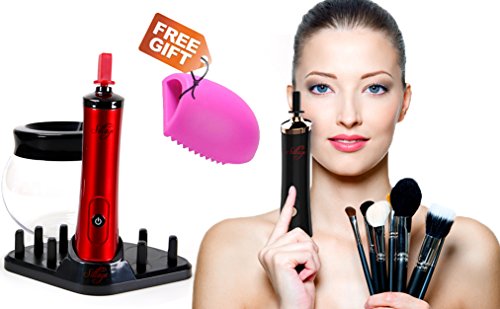 Makeup Brush Cleaner and Dryer, Electric, Automatic, Quick and Easy, Spin, Fits most cosmetic make up brushes, 2018 MODELS (Red)