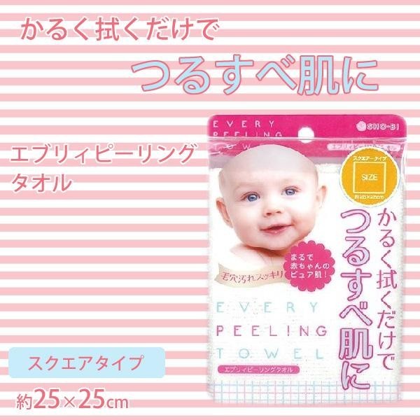 頬やTゾーンの毛穴汚れや余分な皮脂もきれいに洗えて顔全体がつるすべ肌に!ピカッと健康的にあか抜け、化粧ノリもよくなります。 製造国:日本 素材・材質:ポリエステル、ナイロン 商品サイズ:約25×25cm 仕様:洗濯:手洗い ※サプライヤー直送品 ご注文後2~3営業日後の出荷となります【商品名】エブリィピーリングタオル スクエアタイプ SPV40440