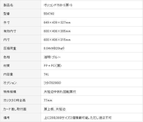 側面が透明で内容物の確認が一目でできる特長に加え、扉を付ける事により段積みした状態で内容物を取り出す事ができます。 製造国:日本 ※サプライヤー直送品 ご注文後2~3営業日後の出荷となります【商品名】三甲 サンコー 扉付きオリコン オリコンP75B-S扉-S 554740 透明ブルー