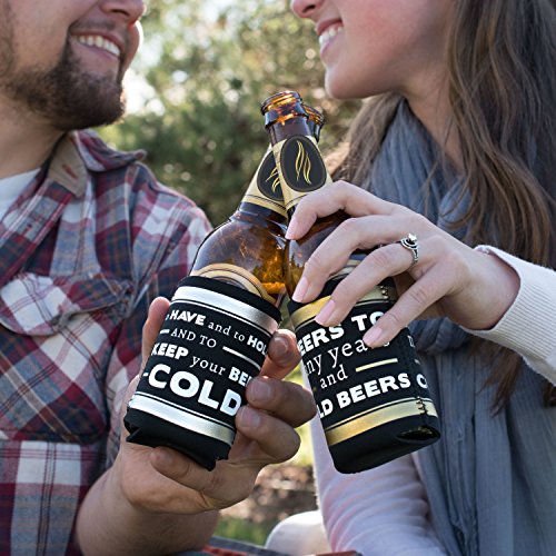 The We Do Crew - Cheers to Many Years and Cold Beers Black and Gold Wedding Insulated Beer Bottle / Beer Can Sleeve