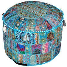 Indian Living Room Pouf, Foot Stool, Round Ottoman Cover Pouf,Traditional Handmade Decorative Patchwork Ottoman Cover,Indian Home Decor Cotton Cushion Ottoman Cover 13x18''By Traditional Indian