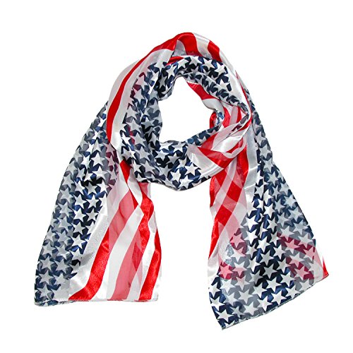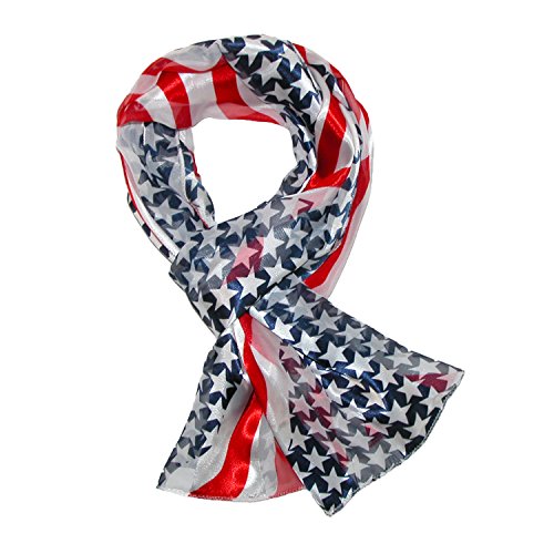 Studio : CTM Publisher : CTM Binding : Apparel Product Description Show your patriotism through this American flag print scarf. Its lightweight material keeps you supporting the red, white, and blue all year around. Wear it around your neck as a scarf, your hips as a belt, or on your head as a headband, get creative when you support the USA. 0