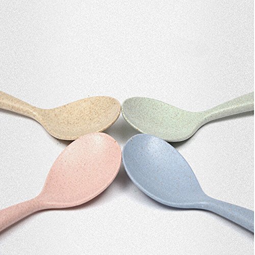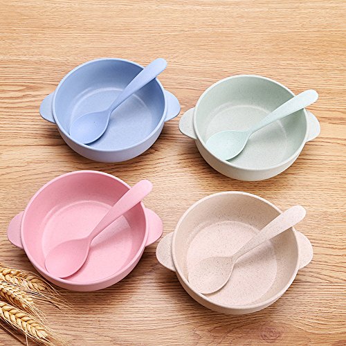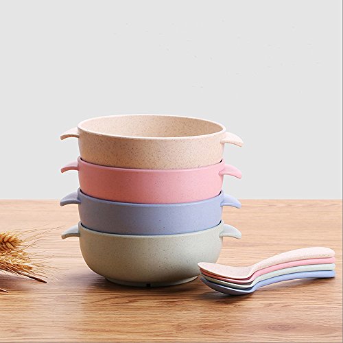 XIDUOBAO Eco Friendly Healthy Wheat Straw Plastic Noodle Rice Soup Popcorn Fruit Salad Bowl for Children with Spoons, Support Microwave (Set of 4)
