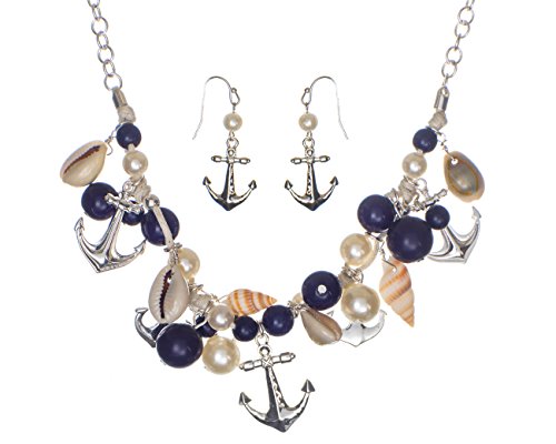 A elegant cable chain leading into a beautifully crafted anchor and imitation sea shell bib necklace finished with beads and matching earrings by Jewelry Nexus Jewelry Nexus is dedicated to introducing jewelry that fits the lifestyle of today's woman. Quality product and first-class customer service have contributed to our reputation. Jewelry Care Instructions: Don't wear your jewelry to bed. Please store your jewelry in a protective container and keep away from sunlight and moisture. For mild cleaning please use a Silver Polishing Cloth.Feature