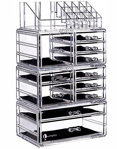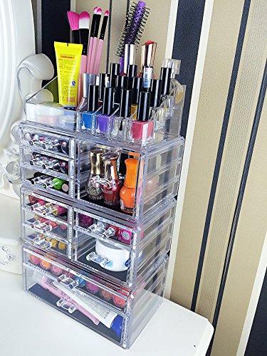 Use the best cosmetic organizers to organize your room and bathroom today So Would you like to choose a project as a lady's long-term investment? Almost all these makeup organisers advertised as acrylic are actually made of a flimsier material called Poly Styrene. We do not use 'plastic moulds' to mass produce the Cq acrylic® - it is meticulously handcrafted. Acrylic is clear as glass, looks exquisite, and does not chip like plastic. With highest quality clear acrylic, theCq acrylic® is an exclusive high end product and is undoubtedly a long term investment to keep your expensive makeup safe, organized and dolled up like it deserves to be. When you have a lot of makeup and jewelry, you know firsthand how hard it can be to organize it all and keep it together and handy when you need it. Thankfully, the Cq acrylic® Acrylic Cosmetic Box is here to give you the best of worlds in one beautiful and stylish storage case. Designed to hold all your favorite makeup accessories and your best jewelry, the universal Cq acrylic® Acrylic Cosmetic Box offers more storage and more convenience than your average jewelry box or cosmetic case. Featuring 11 large pull out drawers and 16 compartments, you'll never again have to search for your lipstick, blush, or wedding right all over the house or bathroom. Features and benefits: ? Acrylic Organizer Dimensions 9.5 x6.5 x14.5 inch ? 11 Drawers and 16 Slots ? Holds Makeup, Lipstick, Makeup Brushes, Jewelry and More ? Mesh-Padded Drawers ? Easy Grip Handles ? Cleans Up Easily with Warm Water and a Wash Cloth Click "Add to Cart" above and get yours today! 0 |