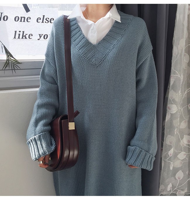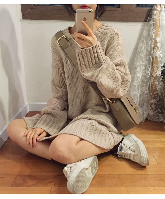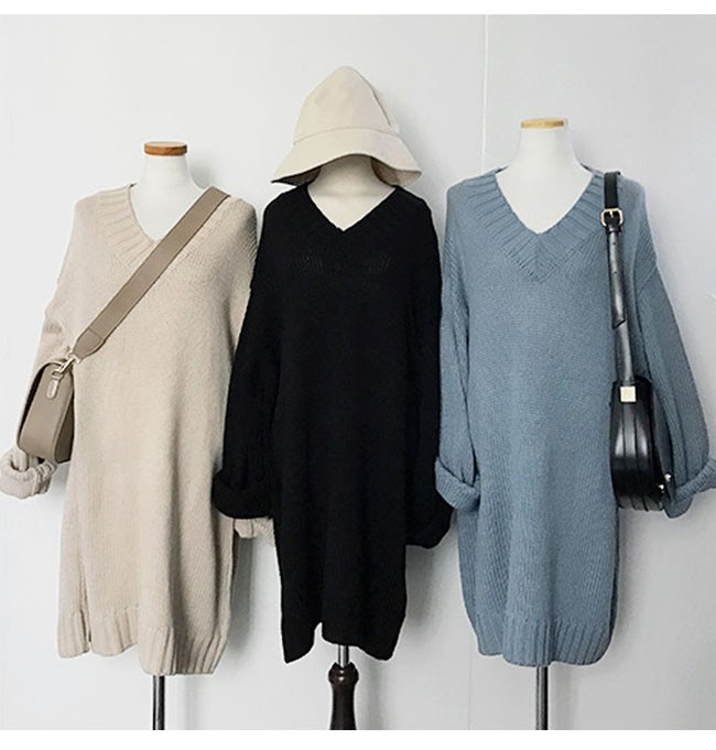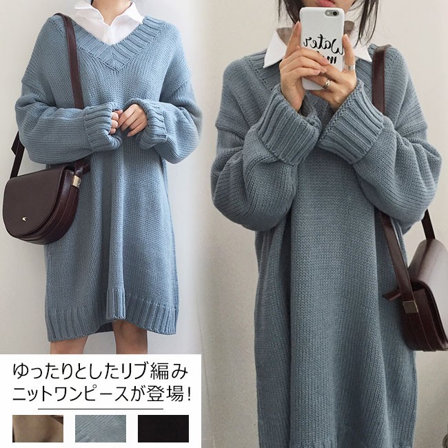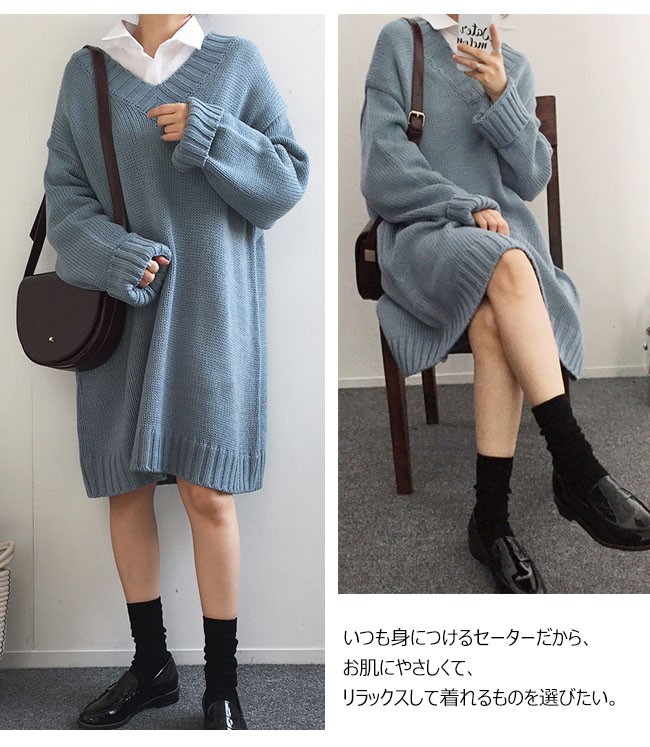 | 商品名 | ニットワンピース ミディアムワンピース 秋冬ワンピース レディース 無地 Vネック ゆったり スタイリッシュ ドロップショルダー 2017秋冬新作 |