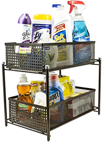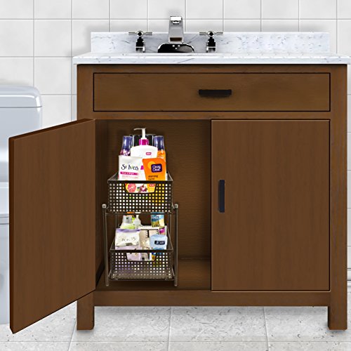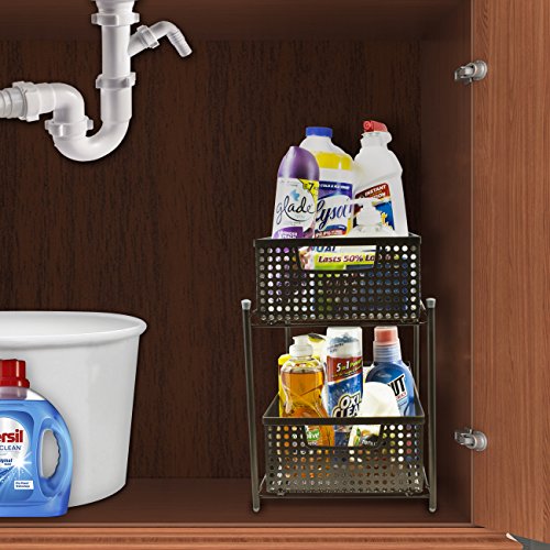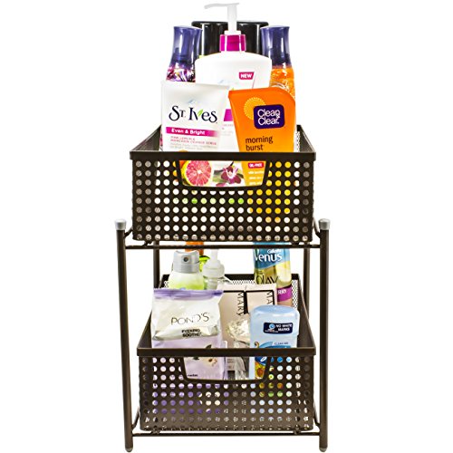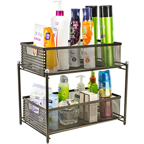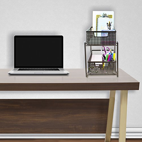 Sorbus 2 Tier Organizer Baskets with Mesh Sliding Drawers —Ideal Cabinet, Countertop, Pantry, Under the Sink, and Desktop Organizer for Bathroom, Kitchen, Office, etc.—Made of Steel (Bronze)