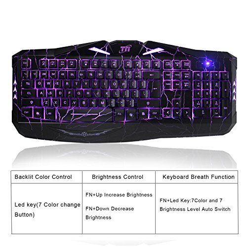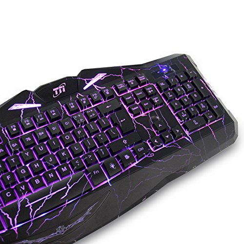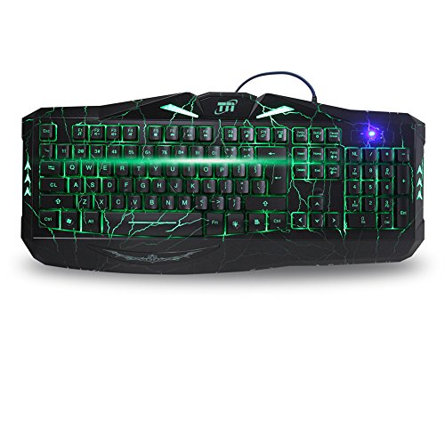 TNI Tornado Backlit Gaming Keyboard With 7 Colors LED Backlit Cool Crack Pattern Mechanical Feel 12 Multimedia Keys USB Gaming Keyboard (2016)