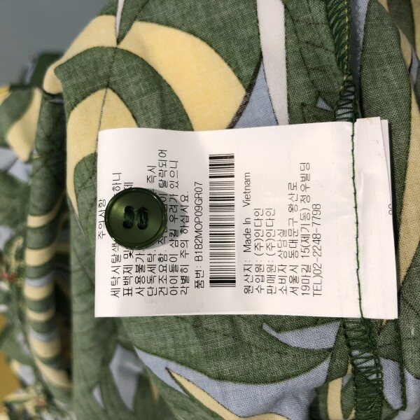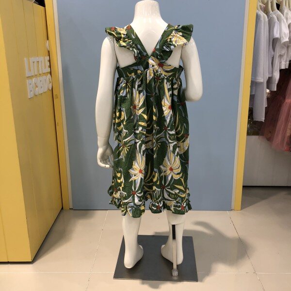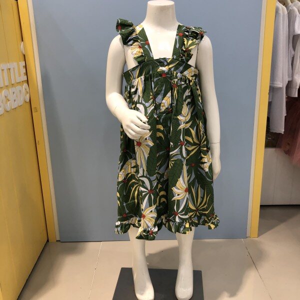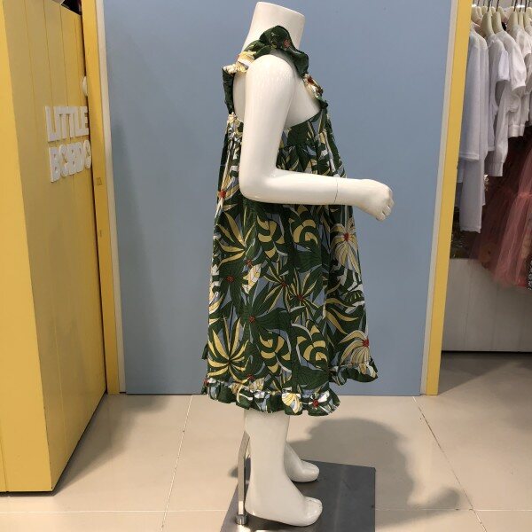 어깨선이 드러나는 휴가철에 딱인원피스입니다면 소재이며, 야자수 모양의 프린팅이눈에 띄네요~