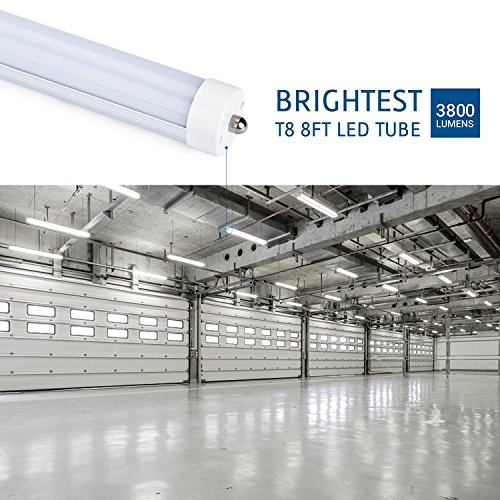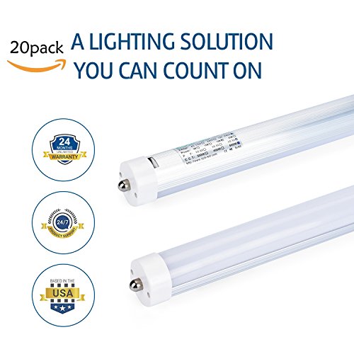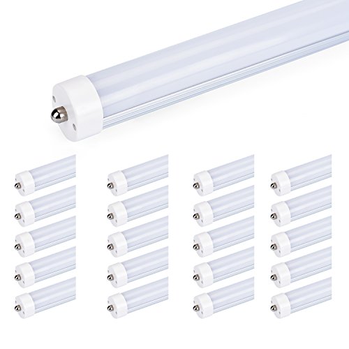 Zoopod T8 FA8 8FT LED Light Tube 36W(90W equivalent), 6500K, 3600 Lumen Brightness, Dual-ended Power, Energy Saving Fluorescent Tube Replacement,Milky Clear Cover (20pcs, milky cover)