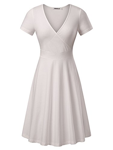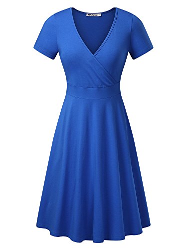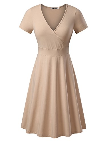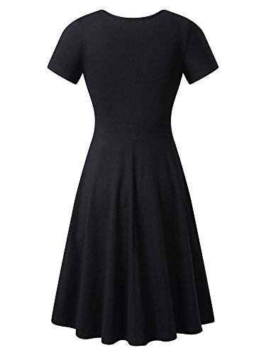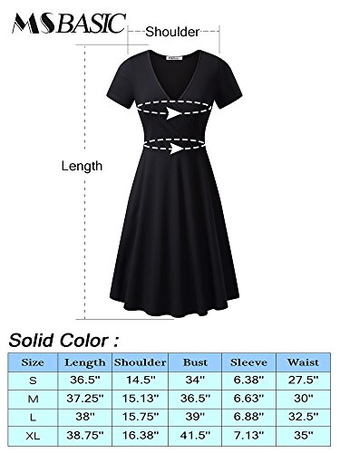 MsBasic Women's Deep V Neck Short Sleeve Unique Cross Wrap Casual Flared Midi Dress
