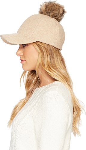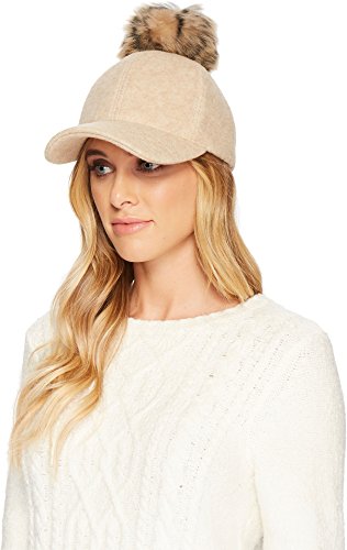 (UGG)/Accessories/Hats/DIRECT FROM USA/UGG Women's Fabric Baseball Hat with Fur Pom Natural Heather LG/XL